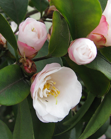 主要形態(tài)特征:花粉白色,花瓣基部具深粉紅色條紋,單瓣,小花型,平均花徑2.79cm,花瓣5枚。多枚花蕾頂生或腋生,開花極其繁密。花期2月下旬-4月,長達(dá)40天左右。嫩葉紫紅色,成熟葉片濃綠色...